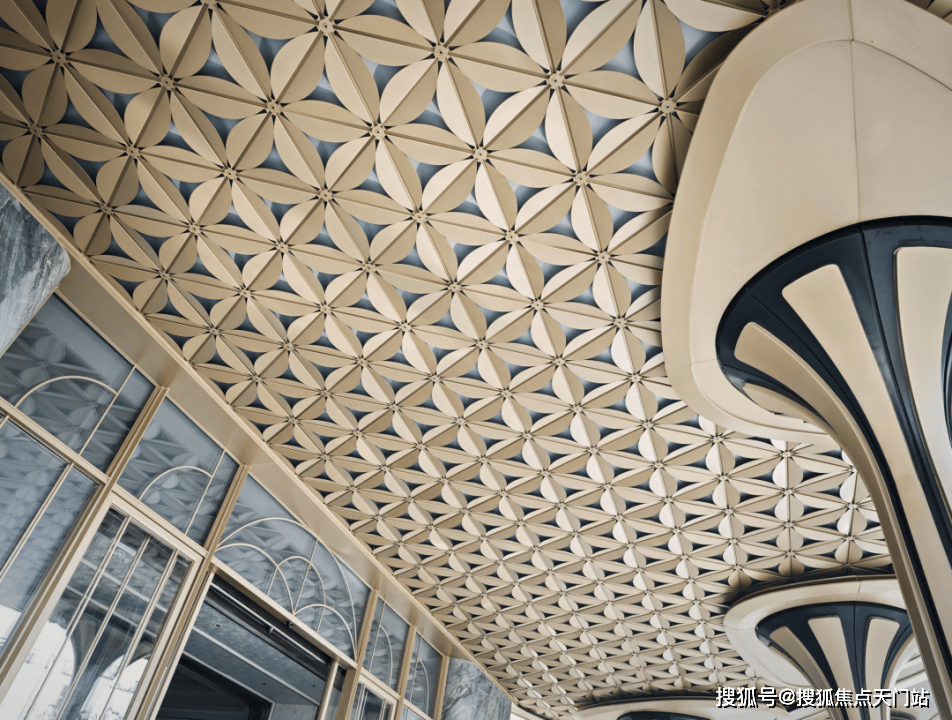 在产品把控上,象屿·天宸雅颂以超越同价位段的标准,打造经得起时间考验的品质住区。光是第一眼见到的门头就造价不菲,顶部做了500多片的镂空透光铝板雕花花瓣,全都是从项目LOGO的形状演化而来。