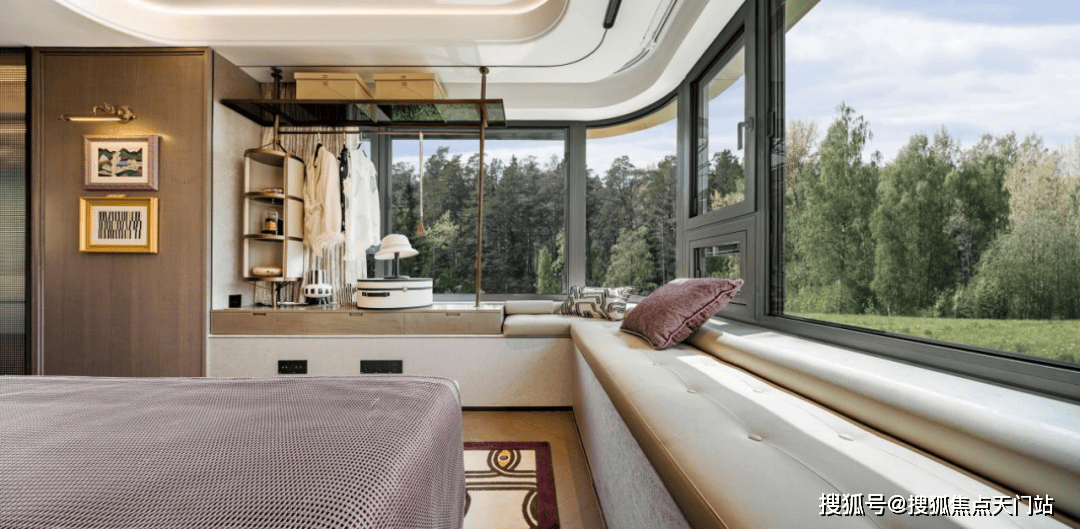 主卧飘窗无立柱遮挡视野,尤其是靠近衣柜的部分可作为创新次净衣柜,平时回家脱掉的外套可以挂在这里。