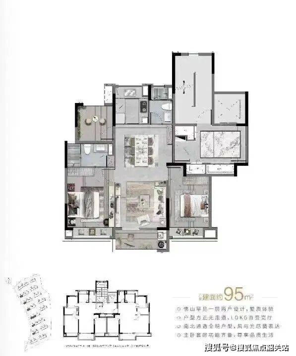 1. 纯板式一层两户设计:佛山罕见的一层两户设计,无论是刚需户型还是改善户型,都能享受低密居住的舒适与尊崇,避免了传统高层楼栋拥挤、私密性差的问题,提升了居住的舒适度和私密性。