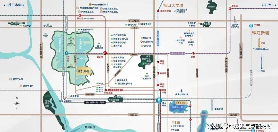 “三轨合一”的轨道交通优势更是项目的核心亮点之一,周边规划及在建的地铁、轻轨、高铁线路,构建起高效便捷的跨区域出行体系。项目距离佛山地铁4号线号线目前处于在建状态,预计2028年通车,通车后可直达佛山火车站、禅城祖庙、南海千灯湖等核心区域,实现与佛山轨道交通网络的无缝衔接;地铁8号线处于规划阶段,未来将进一步完善区域轨道交通布局,提升出行便捷度。除地铁外,项目距离城轨狮山站约900米,乘坐广佛肇城际轻轨,15分钟可抵达佛山市区,30分钟可达广州火车站;距离佛山西站约6公里,佛山西站作为大湾区重要的交通枢纽,开通了直达广州南站、深圳北站、长沙南站等全国主要高铁站的线路,其中高铁到广州南站仅需20分钟,轻松融入大湾区1小时生活圈,无论是日常通勤还是跨城出行,都极为便捷。