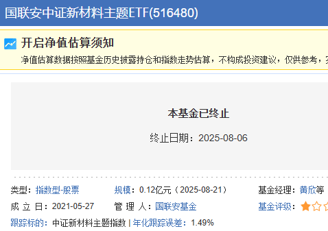国联安中证新材料主题ETF清盘 成半岛体育- 半岛体育官方网站- APP下载立4年多亏损约36%