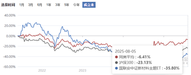 截至国联安中证新材料主题ETF2025年8月5日最后一次披露净值,其累计单位净值为0.6420元,累计收益率-35.8%。