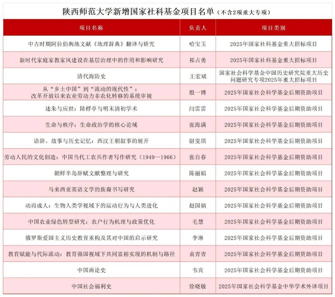 2025-12-31半岛体育,半岛体育官方网站,半岛体育APP下载陕西师范大学共获批项目18项,包括重大项目5项(含重大招标项目2项、重大历史问题研究专项重大招标项目1项、重大专项2项)、后期资助项目12项、中华学术外译项目1项