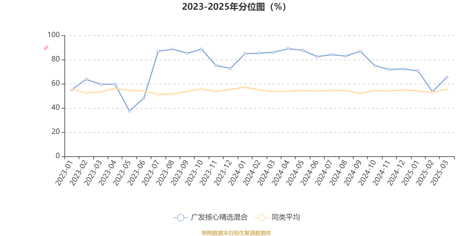 通过所选区间该基金净值增长率分位图,可以观察该基金与同类基金业绩比较情况。图为坐标原点到区间内某时点的净值增长率在同类基金中的分位数。
