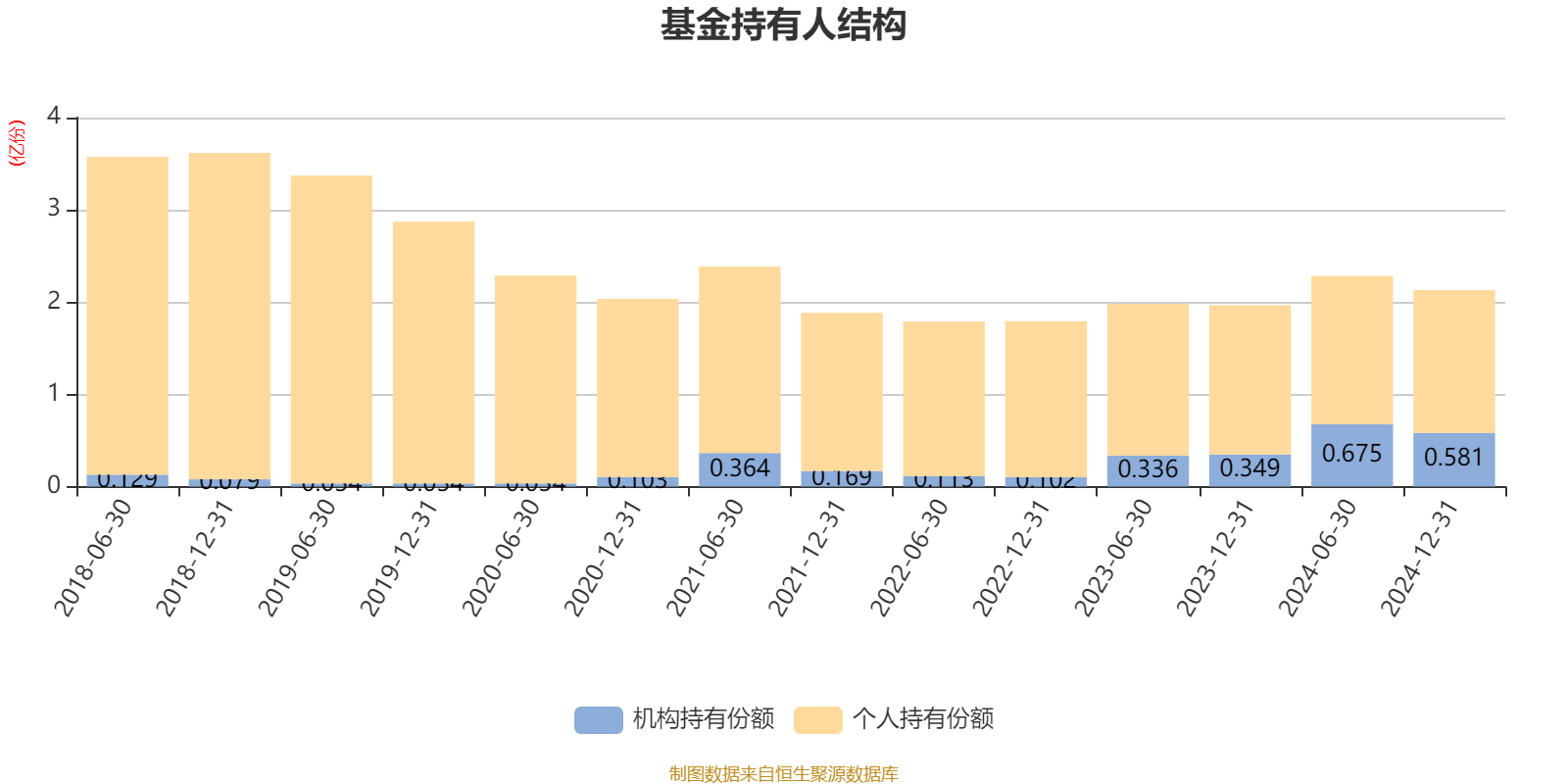 截至2024年12月31日,基金持有人共计3.45万户,合计持有2.13亿份。其中管理人员工持有2289.58份,机构持有份额占比27.27%,个人投资者占比72.73%。