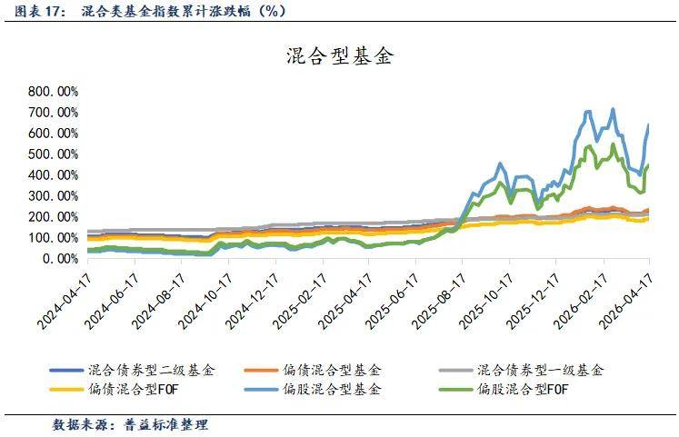 本周各混合基金指数全部上涨。各类型混合类基金指数表现如下:偏债混合型基金指数变动0.58%;混合债券型一级基金指数变动0.23%;混合债券型二级基金指数变动0.46%;偏债混合型FOF指数变动0.25%;偏股混合型基金指数变动2.55%;偏股混合型FOF基金指数变动1.05%。