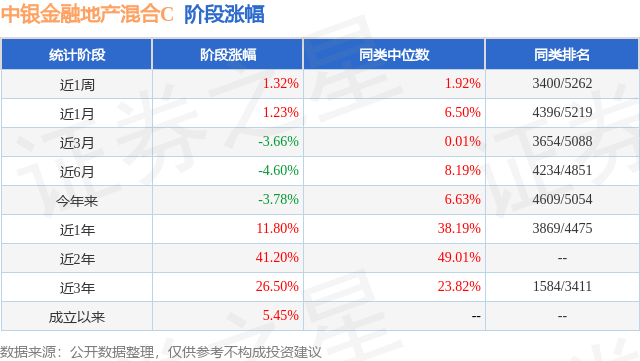从业绩表现来看,中银金融地产混合C基金过去一年净值涨幅为11.8%,在同类基金中排名3869/4475,同类基金过去一年净值涨幅中位数为38.19%。而基金过去一年的最大回撤为-13.2%,成立以来的最大回撤为-38.03%。