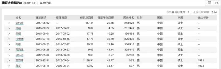 梳理资料显示,华夏大盘精选A自成立来共有9任基金经理,2005年12月31日到2012年5月期间,由“公募一哥”王亚伟管理,任职期间的回报率超1198.91%。现任基金经理陈伟彦从2017年5月起接手,任职期回报为117.41%。